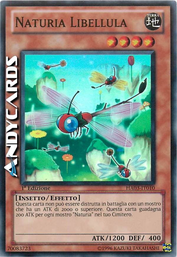 Questa carta non può essere distrutta in battaglia con un mostro che ha un ATK di 2000 o superiore. Questa carta guadagna 200 ATK per ogni mostro "Naturia" nel tuo Cimitero.