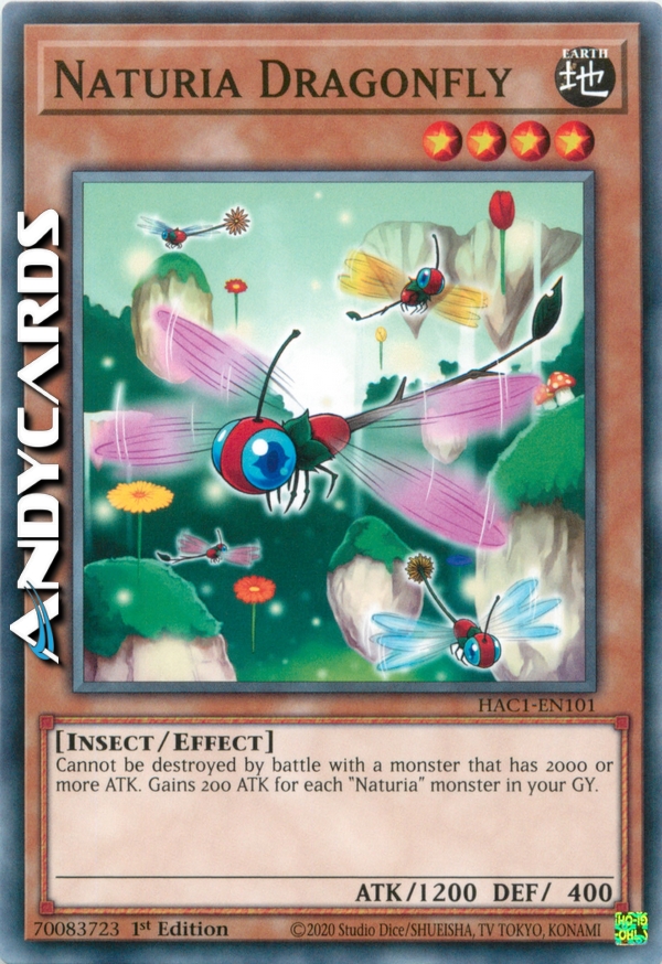 This card cannot be destroyed by battle with a monster that has 2000 or more ATK. This card gains 200 ATK for each "Naturia" monster in your Graveyard.