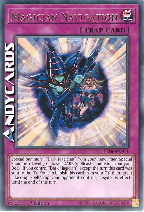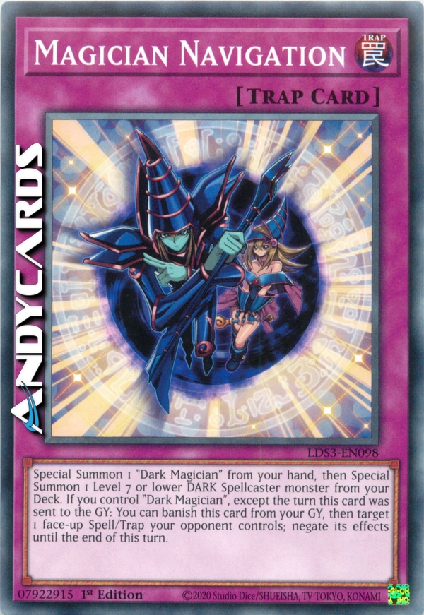 Special Summon 1 "Dark Magician" from your hand, then Special Summon 1 Level 7 or lower DARK Spellcaster monster from your Deck. If you control "Dark Magician", except the turn this card was sent to the GY: You can banish this card from your GY, then target 1 face-up Spell/Trap your opponent controls; negate its effects until the end of this turn.