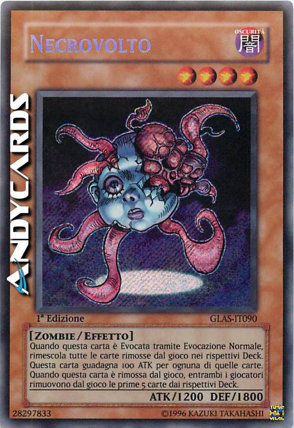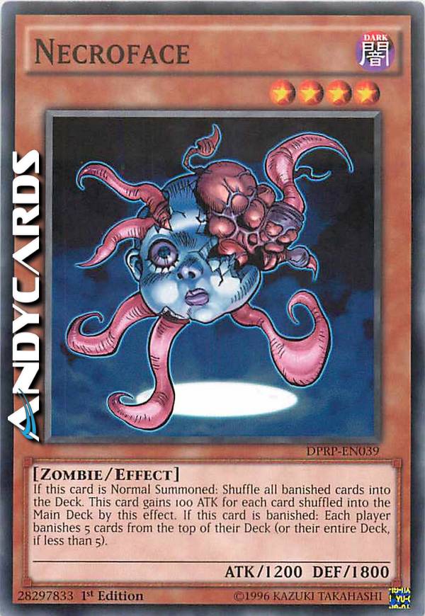 Se questa carta viene Evocata Normalmente: mischia nel Deck tutte le carte bandite. Questa carta guadagna 100 ATK per ogni carta mischiata nel Main Deck da questo effetto. Se questa carta viene bandita: ogni giocatore bandisce 5 carte dalla cima del suo Deck (o tutto il suo Deck, se meno di 5).