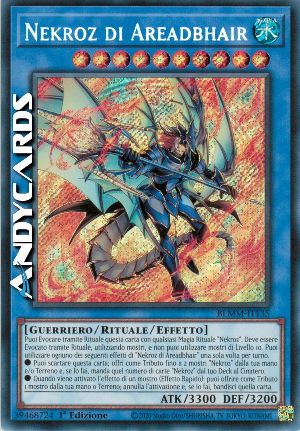 Puoi Evocare tramite Rituale questa carta con qualsiasi Magia Rituale "Nekroz". Deve essere Evocato tramite Rituale, senza utilizzare nessun mostro di Livello 10. Puoi utilizzare ognuno di questi effetti di "Nekroz di Areadbhair" una sola volta per turno.