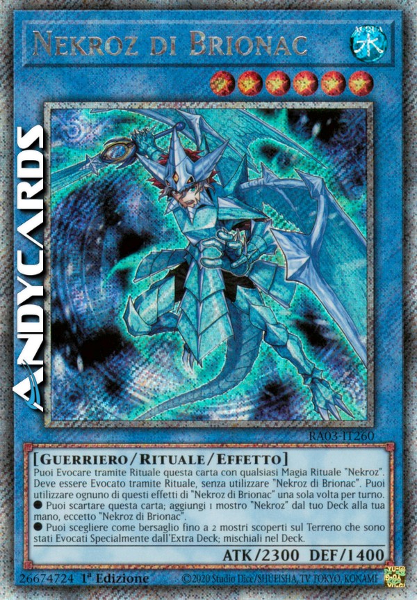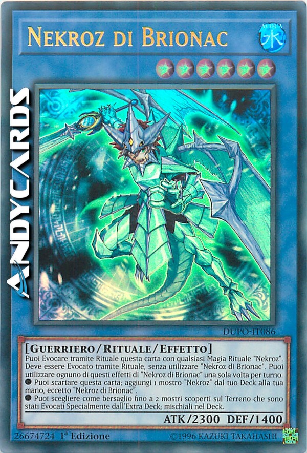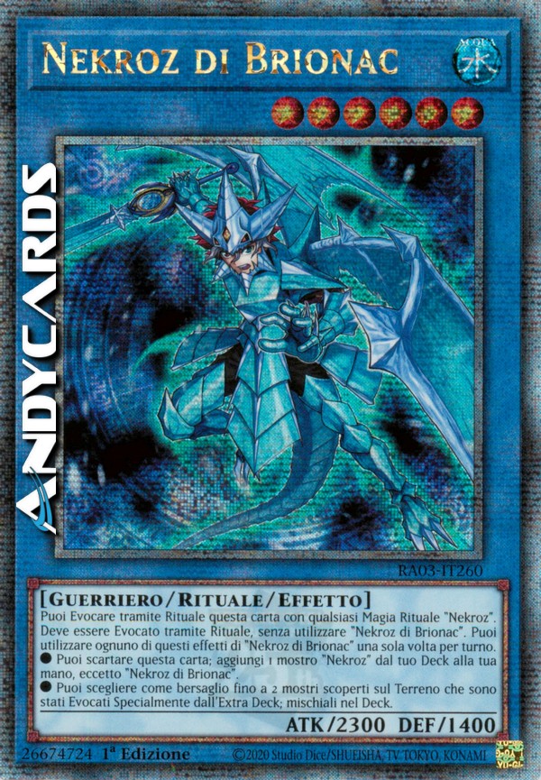 Puoi Evocare tramite Rituale questa carta con qualsiasi Magia Rituale "Nekroz". Deve essere Evocato tramite Rituale, senza utilizzare "Nekroz di Brionac". Puoi utilizzare ognuno di questi effetti di "Nekroz di Brionac" una sola volta per turno.