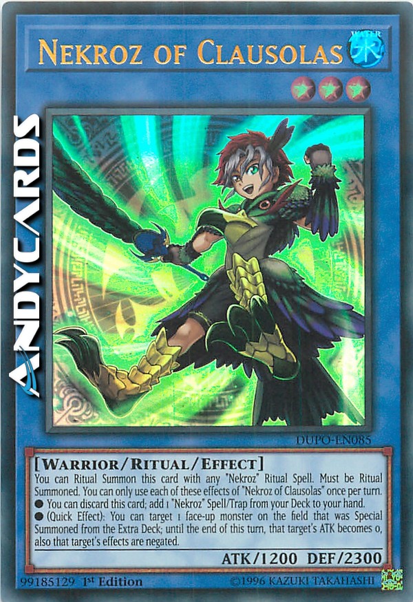 You can Ritual Summon this card with any "Nekroz" Ritual Spell Card. Must be Ritual Summoned and cannot be Special Summoned by other ways. You can only use each of these effects of "Nekroz of Clausolas" once per turn.
