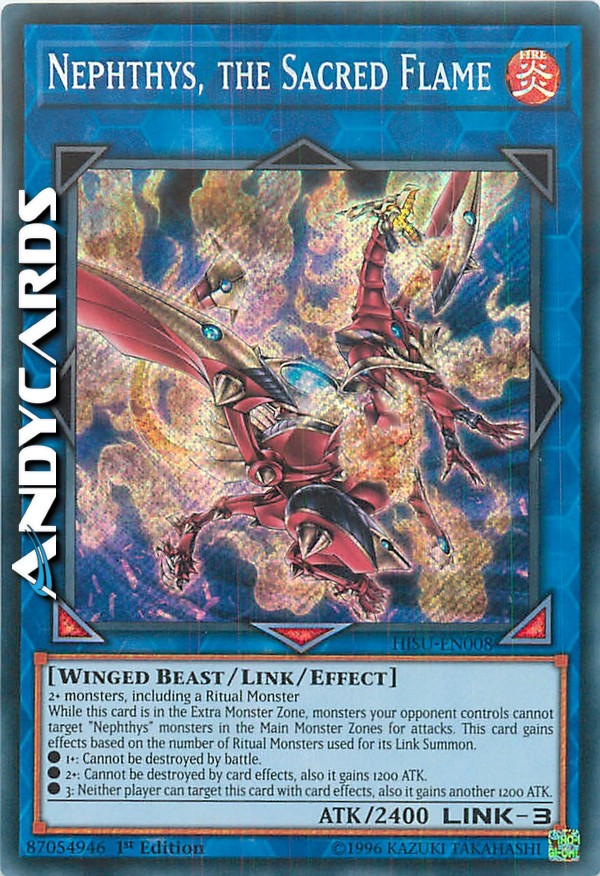 Mentre questa carta è nella Zona Mostri Extra, i mostri controllati dal tuo avversario non possono scegliere come bersaglio i mostri "Nephtys" nella Zona Mostri Main per gli attacchi. Questa carta guadagna effetti a seconda del numero di Mostri Rituale utilizzati per la sua Evocazione Link.