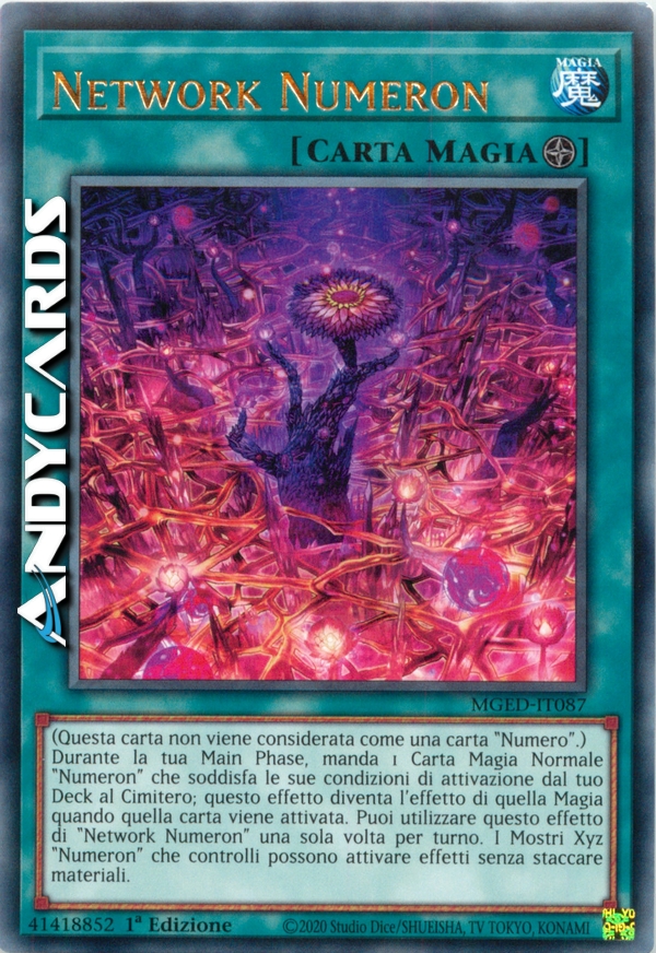 Durante la tua Main Phase, manda 1 Carta Magia Normale "Numeron" che soddisfa le sue condizioni di attivazione dal tuo Deck al Cimitero; questo effetto diventa l'effetto di quella Magia quando quella carta viene attivata. Puoi utilizzare questo effetto di "Network Numeron" una sola volta per turno. I Mostri Xyz "Numeron" che controlli possono attivare effetti senza staccare materiali.