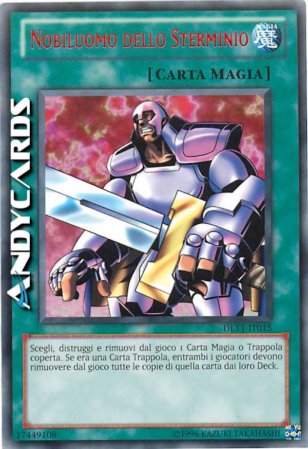 Scegli, distruggi e rimuovi dal gioco 1 Carta Magia o Trappola coperta. Se era una Carta Trappola, entrambi i giocatori devono rimuovere dal gioco tutte le copie di quella carta dai loro Deck.
