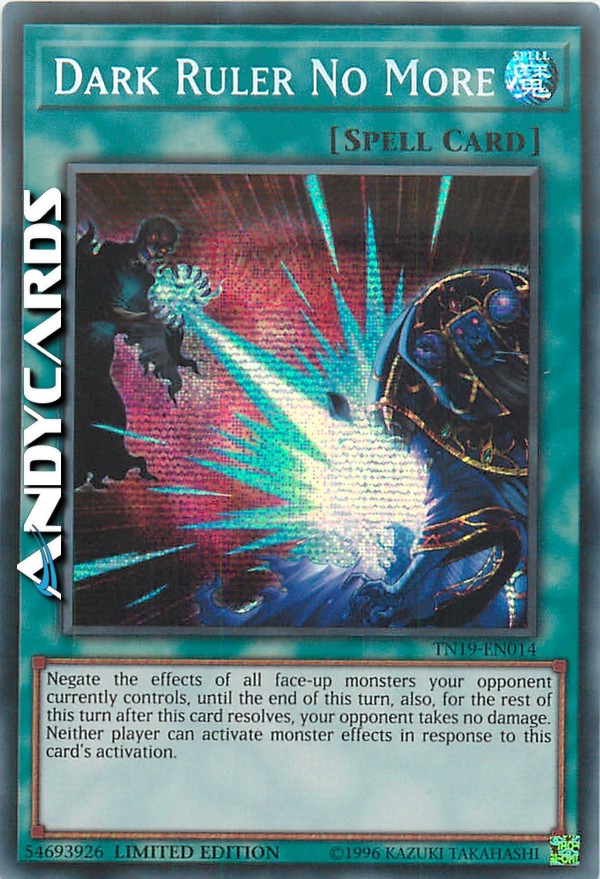 Annulla gli effetti di tutti i mostri scoperti attualmente controllati dal tuo avversario fino alla fine di questo turno, inoltre, per il resto di questo turno dopo che questa carta si è risolta, il tuo avversario non subisce danni. Nessun giocatore può attivare effetti di mostri in risposta all'attivazione di questa carta.