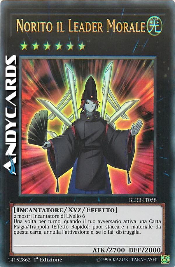 Una volta per turno, durante il turno di qualsiasi giocatore, quando il tuo avversario attiva una Carta Magia/Trappola: puoi staccare 1 Materiale Xyz da questa carta; annulla l'attivazione e, se lo fai, distruggila.