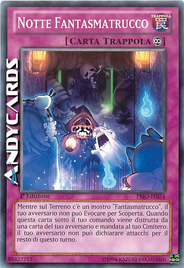 Mentre sul Terreno c'è un mostro "Fantasmatrucco" , il tuo avversario non può Evocare per Scoperta. Quando questa carta sotto il tuo comando viene distrutta da una carta del tuo avversario e mandata al tuo Cimitero: il tuo avversario non può dichiarare attacchi per il resto di questo turno.