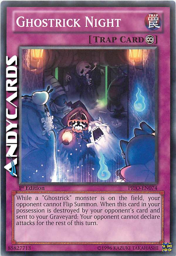 While a "Ghostrick" monster is on the field, your opponent cannot Flip Summon. When this card in your possession is destroyed by your opponent's card and sent to the Graveyard: Your opponent cannot declare attacks for the rest of this turn.