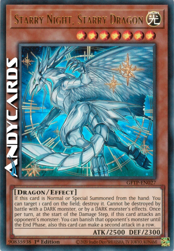Se questa carta viene Evocata Normalmente o Specialmente dalla mano: puoi scegliere come bersaglio 1 carta sul Terreno; distruggila. Non può essere distrutto in battaglia con un mostro OSCURITÀ, o dagli effetti di un mostro OSCURITÀ. Una volta per turno, all'inizio del Damage Step, se questa carta attacca un mostro dell'avversario: puoi bandire quel mostro dell'avversario fino alla End Phase, inoltre questa carta può effettuare un secondo attacco di seguito.