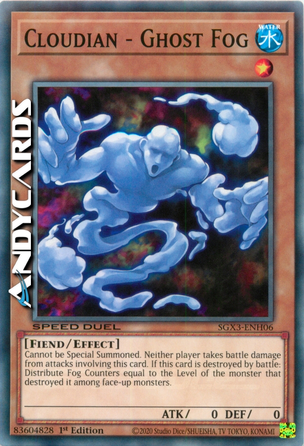Cannot be Special Summoned. Neither player takes battle damage from attacks involving this card. If this card is destroyed by battle: Distribute Fog Counters equal to the Level of the monster that destroyed it among face-up monsters.
