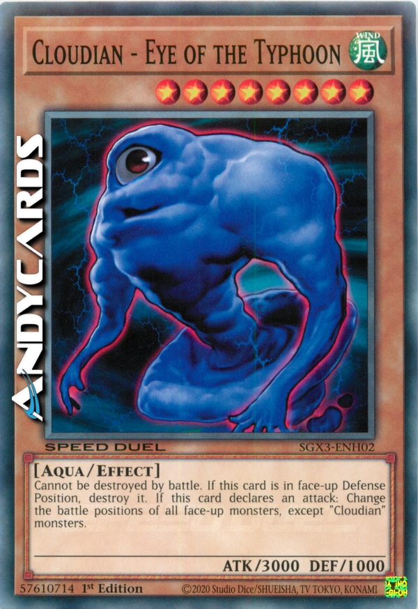 This card cannot be destroyed by battle. If this card is in face-up Defense Position, destroy it. When this card declares an attack, change the battle positions of all face-up monsters, except "Cloudian" monsters.
