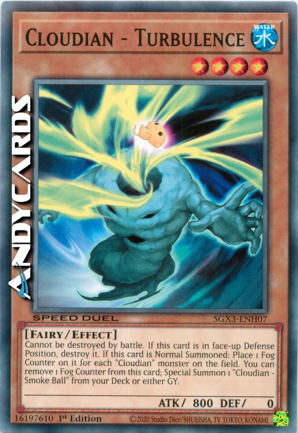 Cannot be destroyed by battle. If this card is in face-up Defense Position, destroy it. If this card is Normal Summoned: Place 1 Fog Counter on it for each "Cloudian" monster on the field. You can remove 1 Fog Counter from this card; Special Summon 1 "Cloudian - Smoke Ball" from your Deck or either GY.