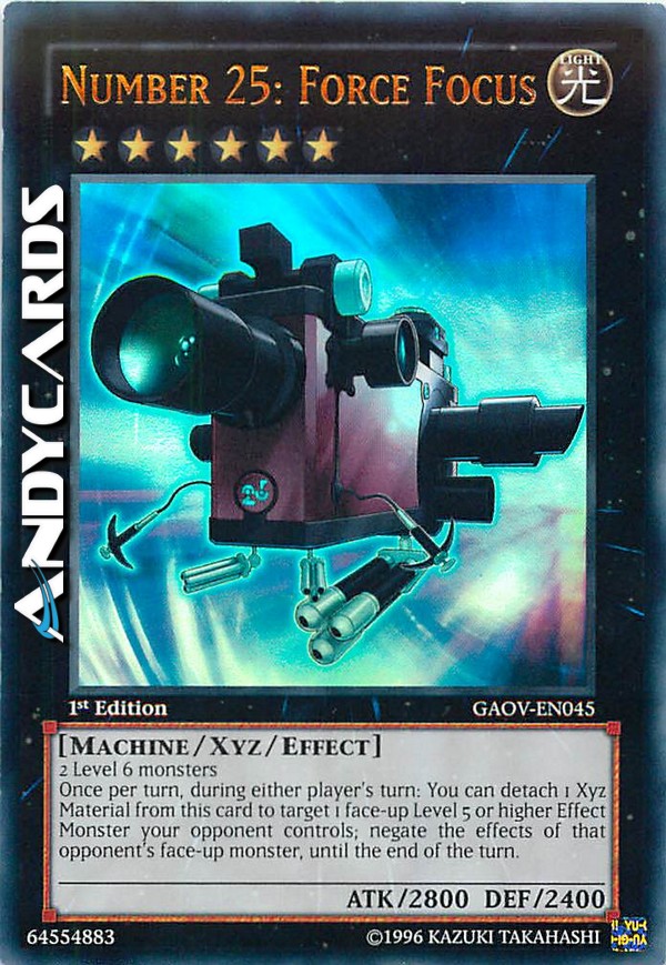 Once per turn, during either player's turn: You can detach 1 Xyz Material from this card to target 1 face-up Level 5 or higher Effect Monster your opponent controls; negate the effects of that opponent's face-up monster, until the end of the turn.