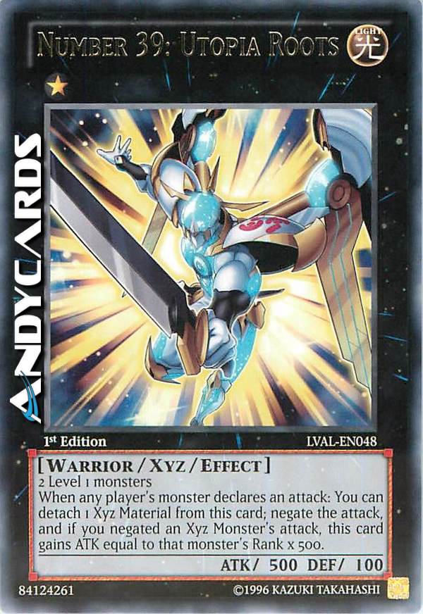 2 Level 1 monsters. When any player's monster declares an attack: You can detach 1 Xyz Material from this card; negate the attack, and if you negated an Xyz Monster's attack, this card gains ATK equal to that monster's Rank x 500.