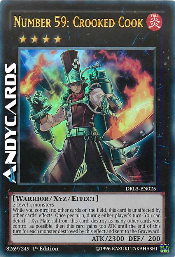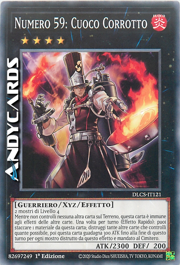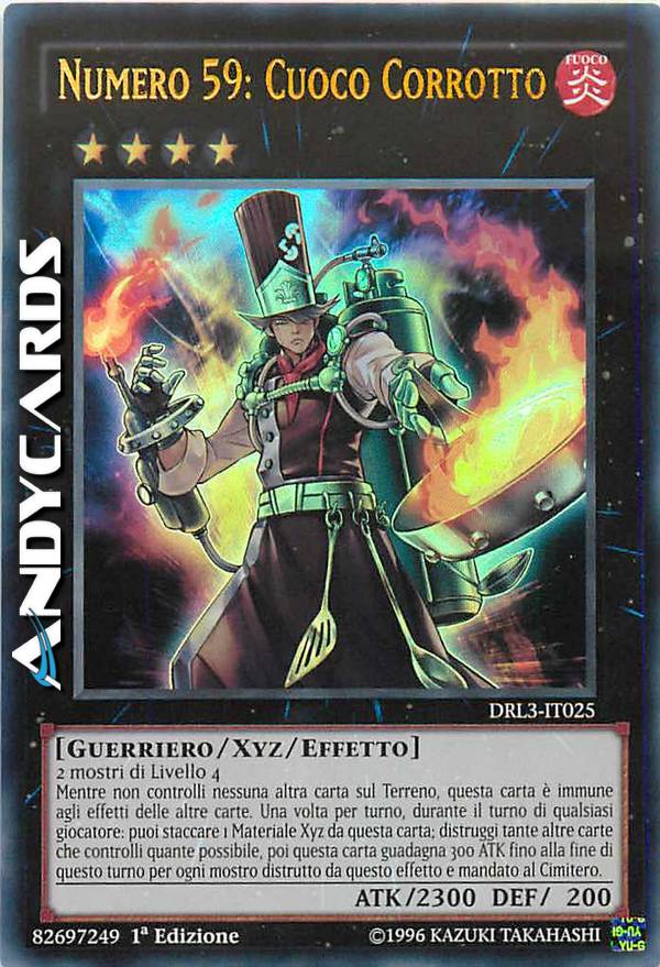 Mentre non controlli nessuna altra carta sul Terreno, questa carta è immune agli effetti delle altre carte. Una volta per turno, durante il turno di qualsiasi giocatore: puoi staccare 1 Materiale Xyz da questa carta; distruggi tante altre carte che controlli quante possibile, poi questa carta guadagna 300 ATK fino alla fine di questo turno per ogni mostro distrutto da questo effetto e mandato al Cimitero.