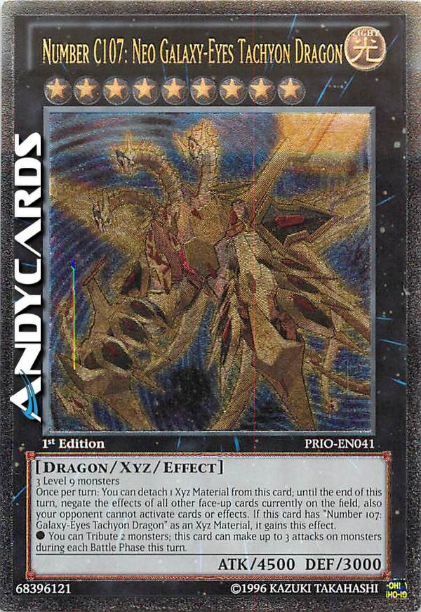 Once per turn: You can detach 1 material from this card; until the end of this turn, negate the effects of all other face-up cards currently on the field, also your opponent cannot activate cards or effects on the field. If this card has "Number 107: Galaxy-Eyes Tachyon Dragon" as material, it gains this effect.