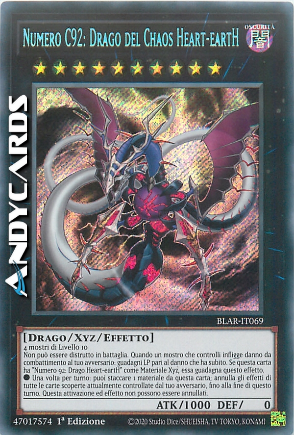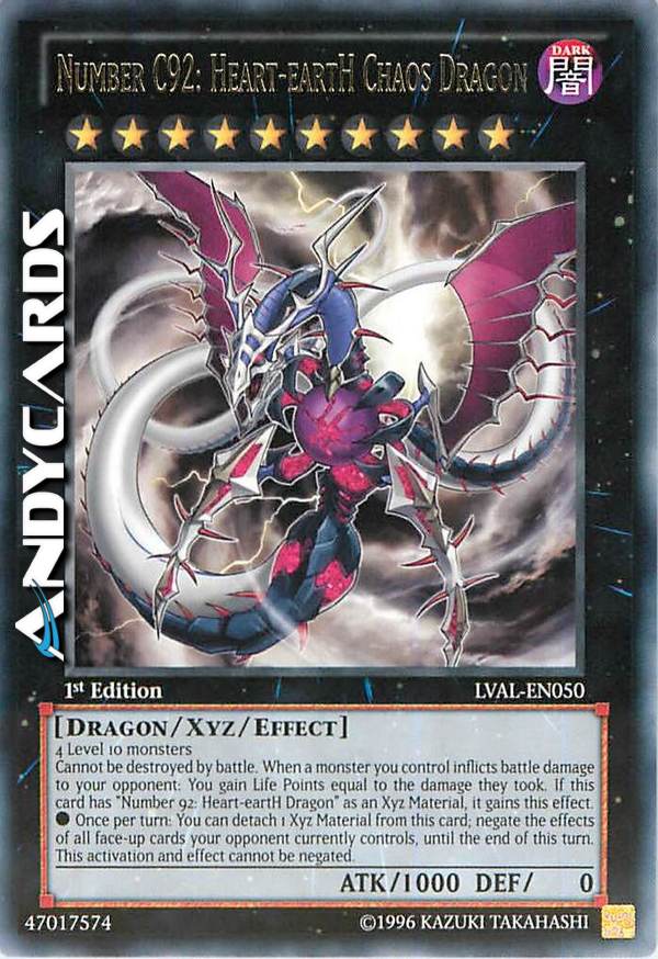 Non può essere distrutto in battaglia. Quando un mostro che controlli infligge danno da combattimento al tuo avversario: guadagni Life Point pari al danno che ha subito. Se questa carta ha "Numero 92: Drago Heart-eartH" come Materiale Xyz, essa guadagna questo effetto.