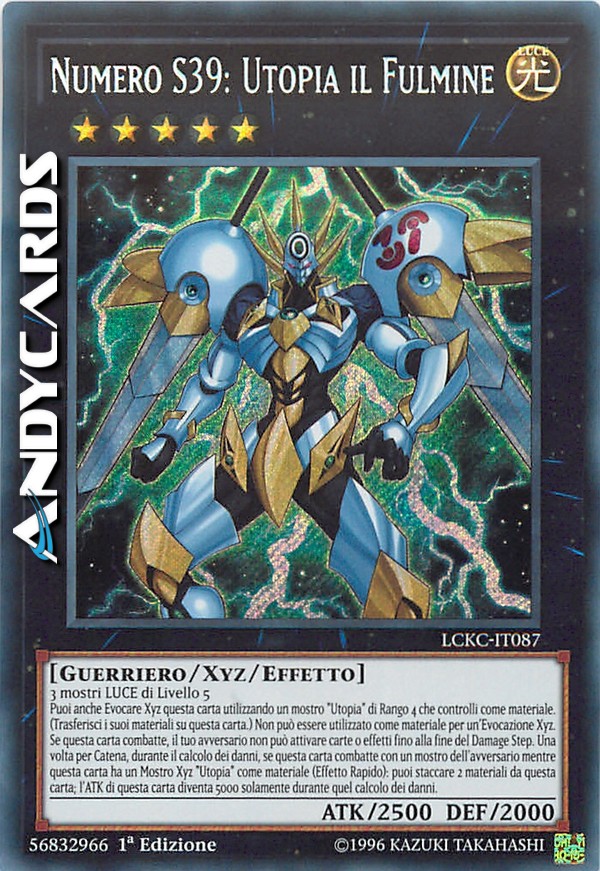 Puoi anche Evocare Xyz questa carta utilizzando un mostro "Utopia" di Rango 4 che controlli come materiale. (Trasferisci i suoi materiali su questa carta.) Non può essere utilizzato come materiale per un'Evocazione Xyz. Se questa carta combatte, il tuo avversario non può attivare carte o effetti fino alla fine del Damage Step. Una volta per Catena, durante il calcolo dei danni, se questa carta combatte con un mostro dell'avversario mentre questa carta ha un Mostro Xyz "Utopia" come materiale (Effetto Rapido): puoi staccare 2 materiali da questa carta; l'ATK di questa carta diventa 5000 solamente durante quel calcolo dei danni.