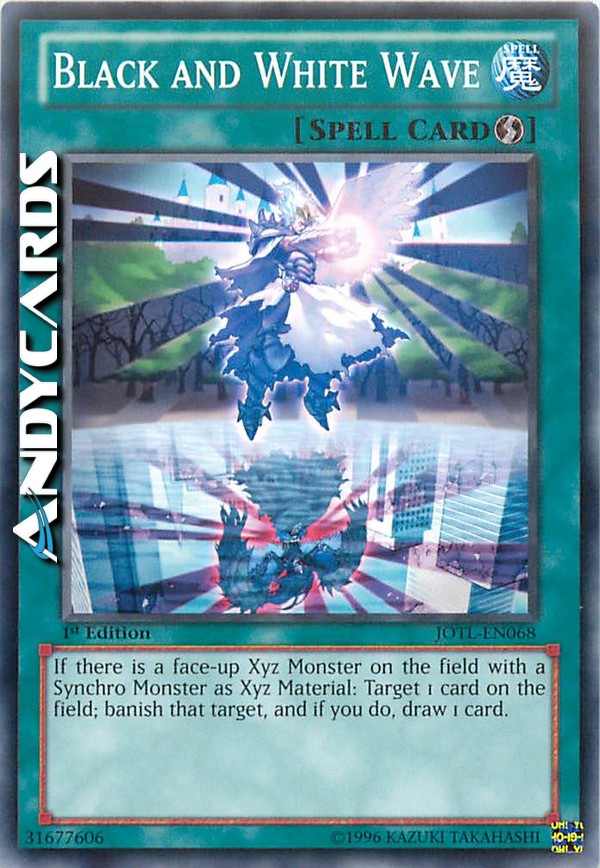 If there is a face-up Xyz Monster on the field with a Synchro Monster as Xyz Material: Target 1 card on the field; banish that target, and if you do, draw 1 card.