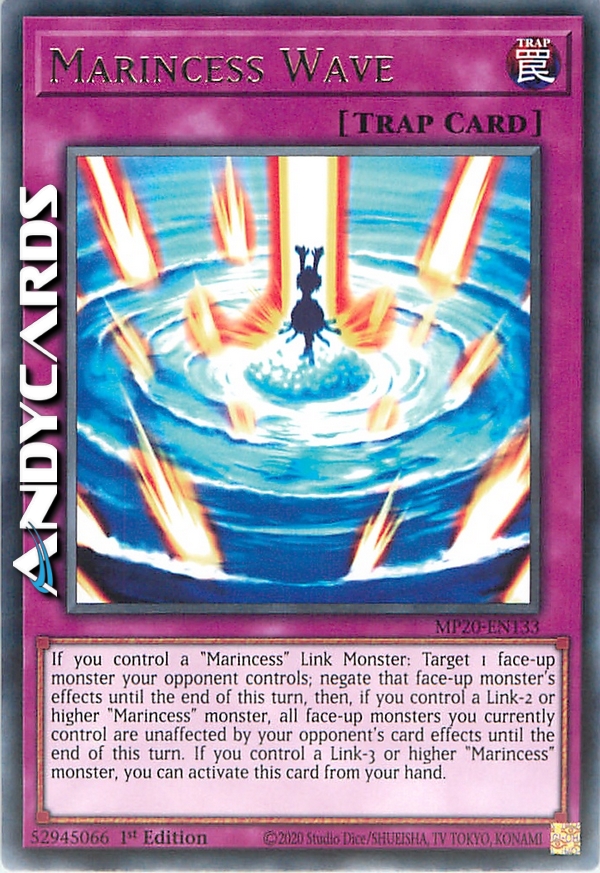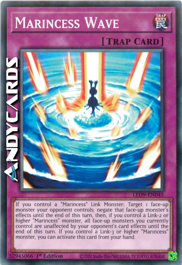 Se controlli un Mostro Link "Marincipessa": scegli come bersaglio 1 mostro scoperto controllato dal tuo avversario; annulla gli effetti di quel mostro scoperto fino alla fine di questo turno, poi, se controlli un mostro "Marincipessa" Link-2 o superiore, tutti i mostri scoperti che controlli attualmente sono immuni agli effetti delle carte del tuo avversario fino alla fine di questo turno. Se controlli un mostro "Marincipessa" Link-3 o superiore, puoi attivare questa carta dalla tua mano.