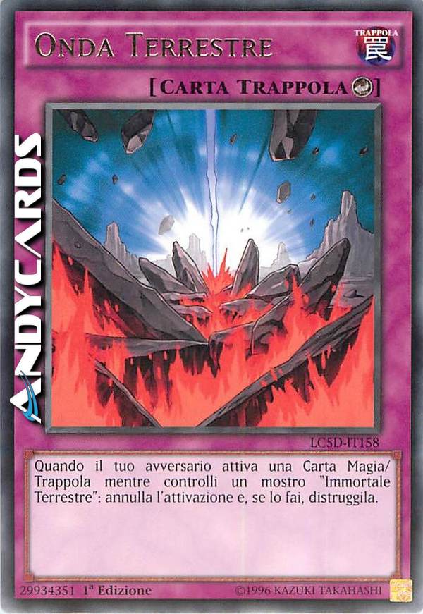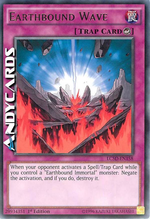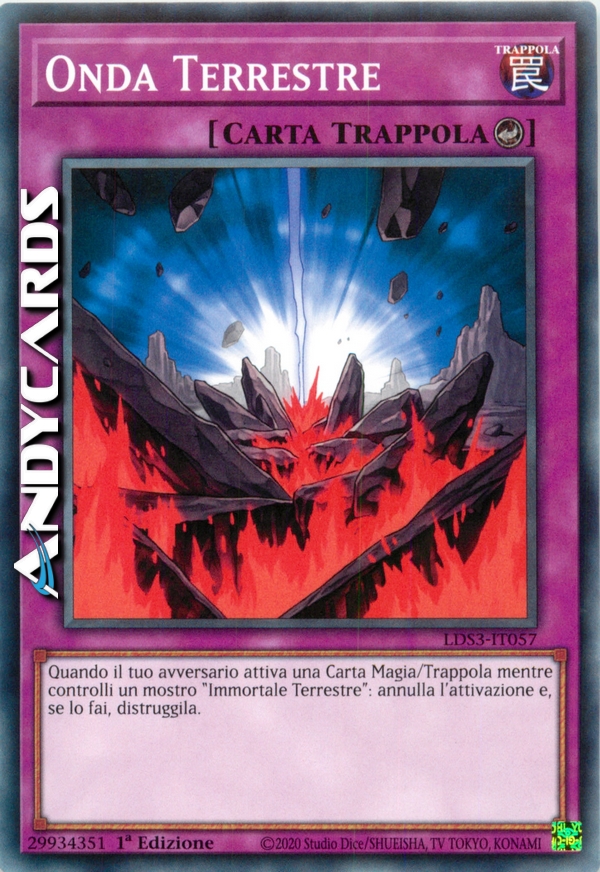 Quando il tuo avversario attiva una carta Magia/Trappola mentre controlli un mostro "Immortale Terrestre": annulla l'attivazione e, se lo fai, distruggila.