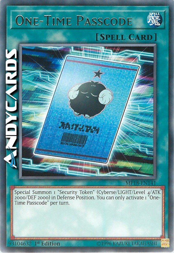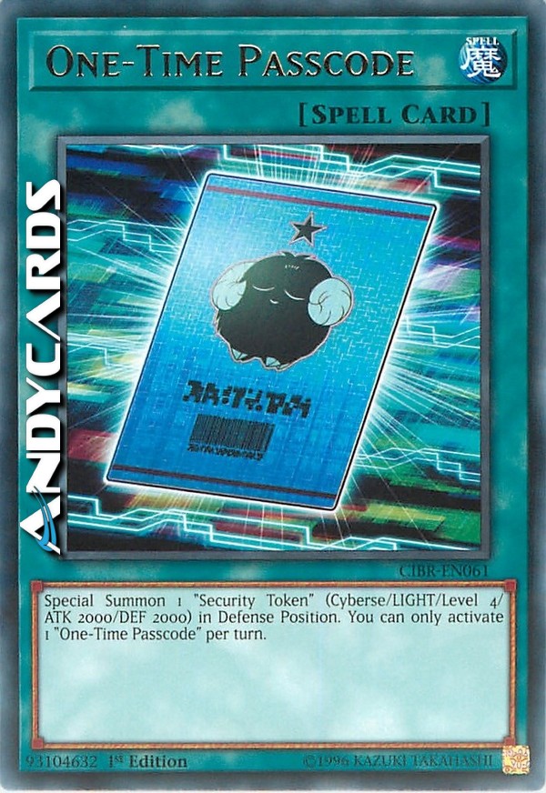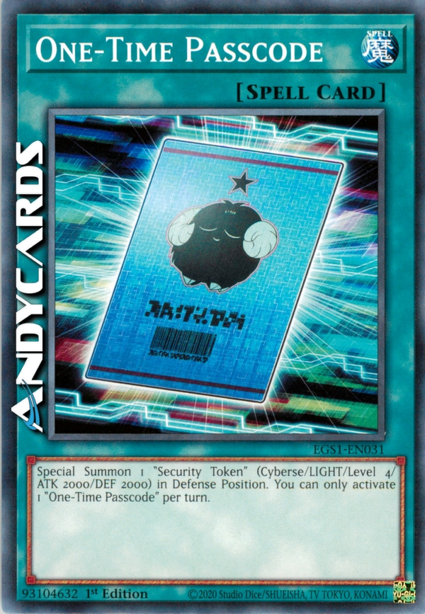 Special Summon 1 "Security Token" (Cyberse/LIGHT/Level 4/ATK 2000/DEF 2000) in Defense Position. You can only activate 1 "One-Time Passcode" per turn.