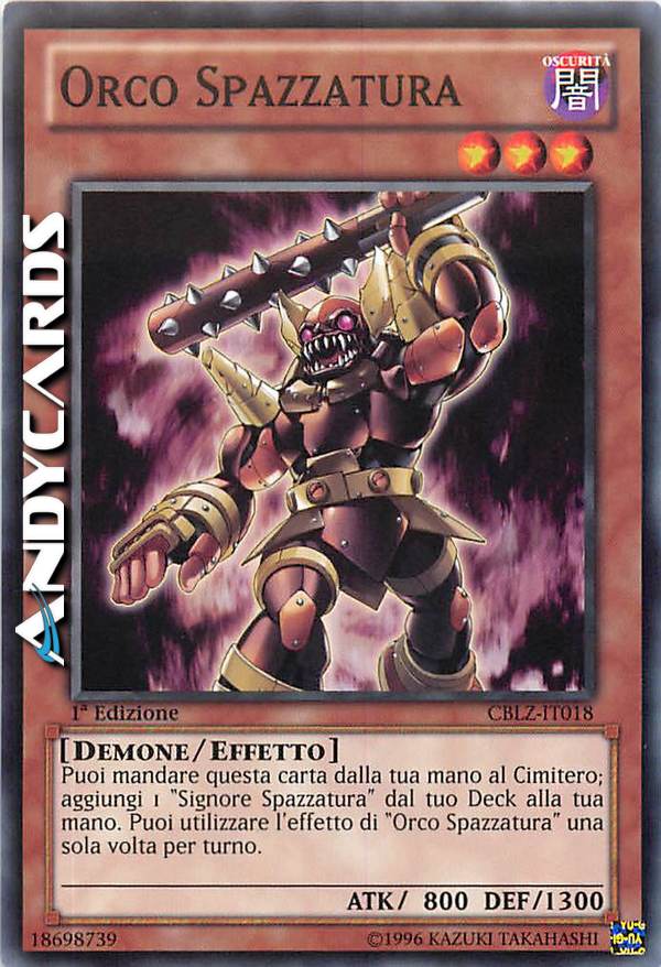 Puoi mandare questa carta dalla tua mano al Cimitero; aggiungi 1 "Signore Spazzatura" dal tuo Deck alla tua mano. Puoi utilizzare l'effetto di "Orco Spazzatura" una sola volta per turno.