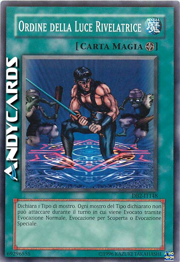 Dichiara 1 Tipo di mostro. Ogni mostro del Tipo dichiarato non può attaccare durante il turno in cui è viene Evocato tramite Evocazione Normale, Evocazione per Scoperta o Evocazione Speciale.