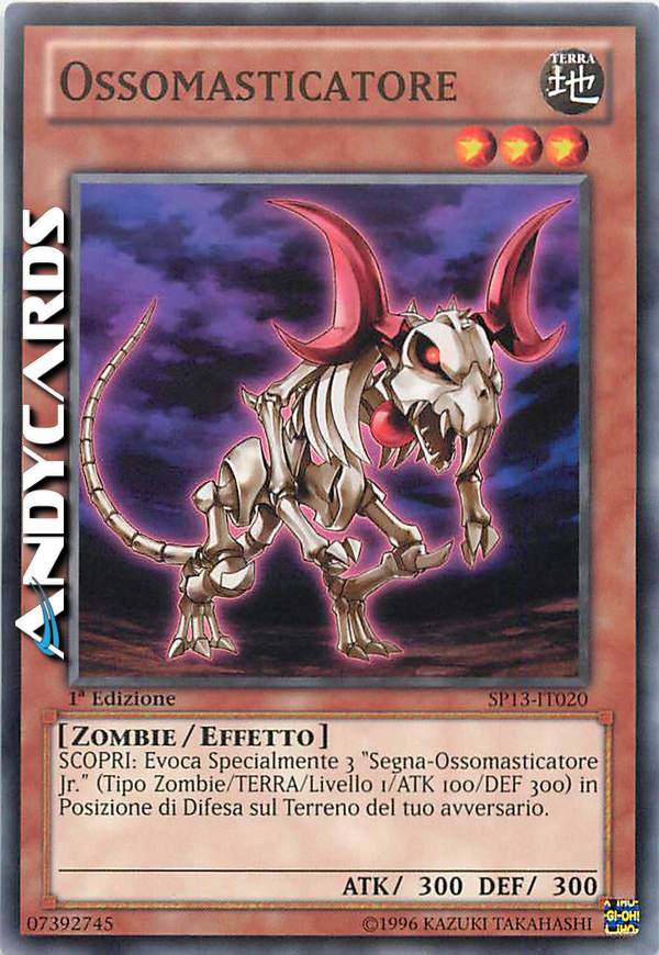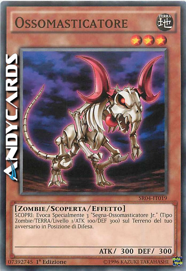 SCOPRI: Evoca Specialmente 3 "Segna-Ossomasticatore Jr." (Tipo Zombie/TERRA/Livello 1/ATK 100/DEF 300) in Posizione di Difesa sul Terreno del tuo avversario.
