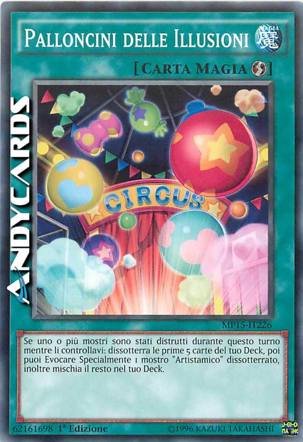 Se uno o più mostri sono stati distrutti durante questo turno mentre li controllavi: dissotterra le prime 5 carte del tuo Deck, poi puoi Evocare Specialmente 1 mostro "Artistamico" dissotterrato, inoltre mischia il resto nel tuo Deck.