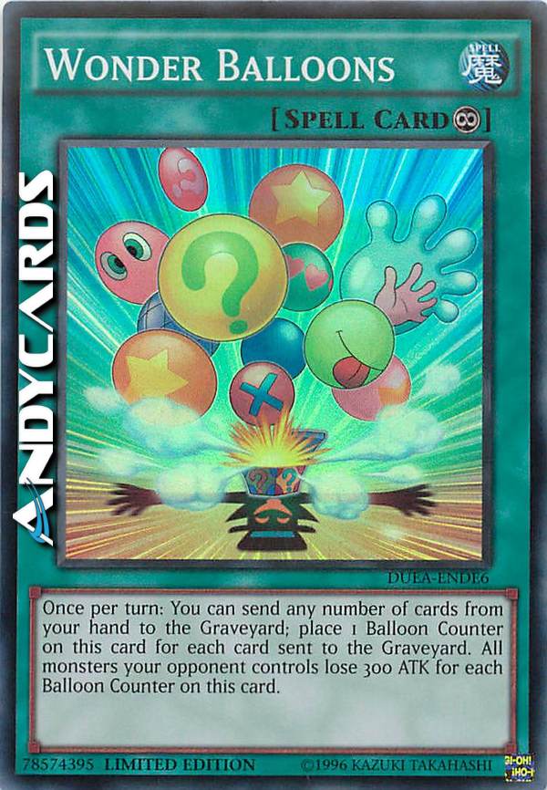 Once per turn: You can send any number of cards from your hand to the GY; place 1 Balloon Counter on this card for each card sent to the GY. All monsters your opponent controls lose 300 ATK for each Balloon Counter on this card.