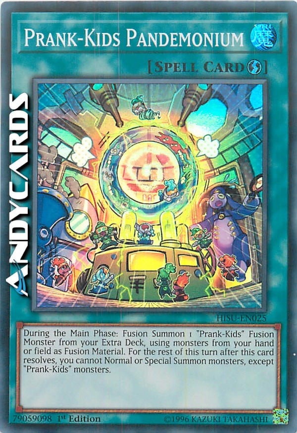 During the Main Phase: Fusion Summon 1 "Prank-Kids" Fusion Monster from your Extra Deck, using monsters from your hand or field as Fusion Material. For the rest of this turn after this card resolves, you cannot Normal or Special Summon monsters, except "Prank-Kids" monsters.