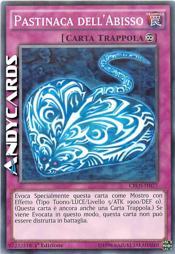 Evoca Specialmente questa carta come Mostro con Effetto (Tipo Tuono/LUCE/Livello 5/ATK 1900/DEF 0). (Questa carta è ancora anche una Carta Trappola.) Se viene Evocata in questo modo, questa carta non può essere distrutta in battaglia.