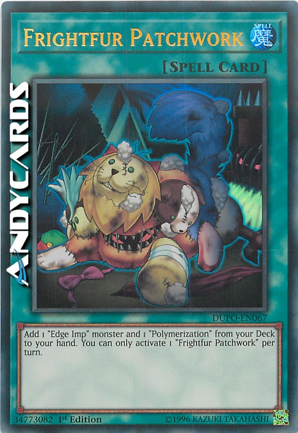 Add 1 "Edge Imp" monster and 1 "Polymerization" from your Deck to your hand. You can only activate 1 "Frightfur Patchwork" per turn.