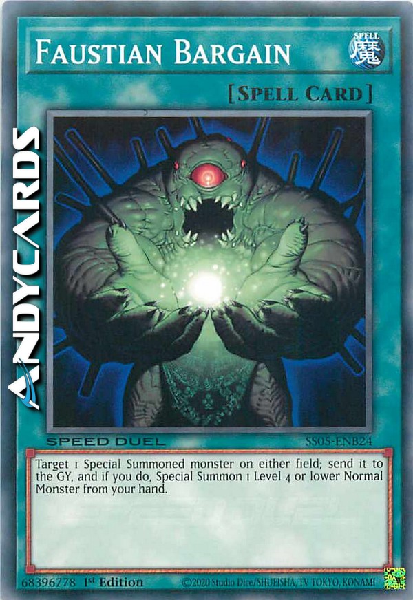 Manda 1 mostro Evocato Specialmente da qualsiasi Terreno al Cimitero ed Evoca Specialmente 1 Mostro Normale di Livello 4 o inferiore dalla tua mano.