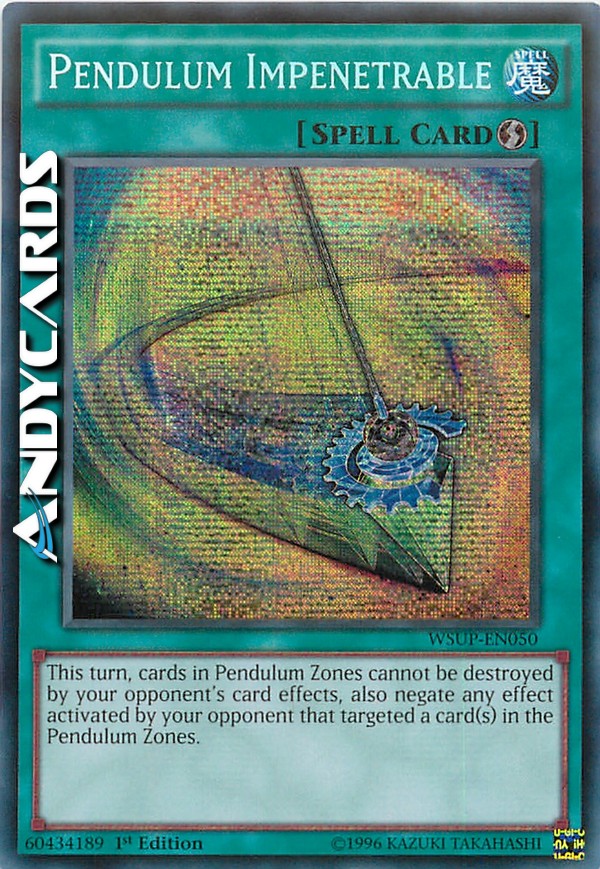 In questo turno, le carte nelle Zone Pendulum non possono essere distrutte dagli effetti delle carte del tuo avversario, inoltre annulla qualsiasi effetto attivato dal tuo avversario che ha scelto come bersaglio una o più carte nelle Zone Pendulum.