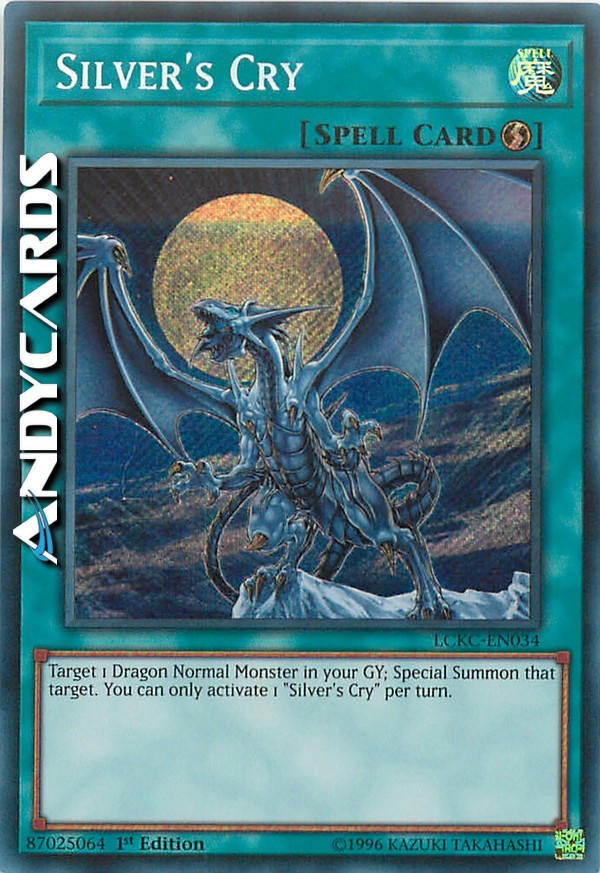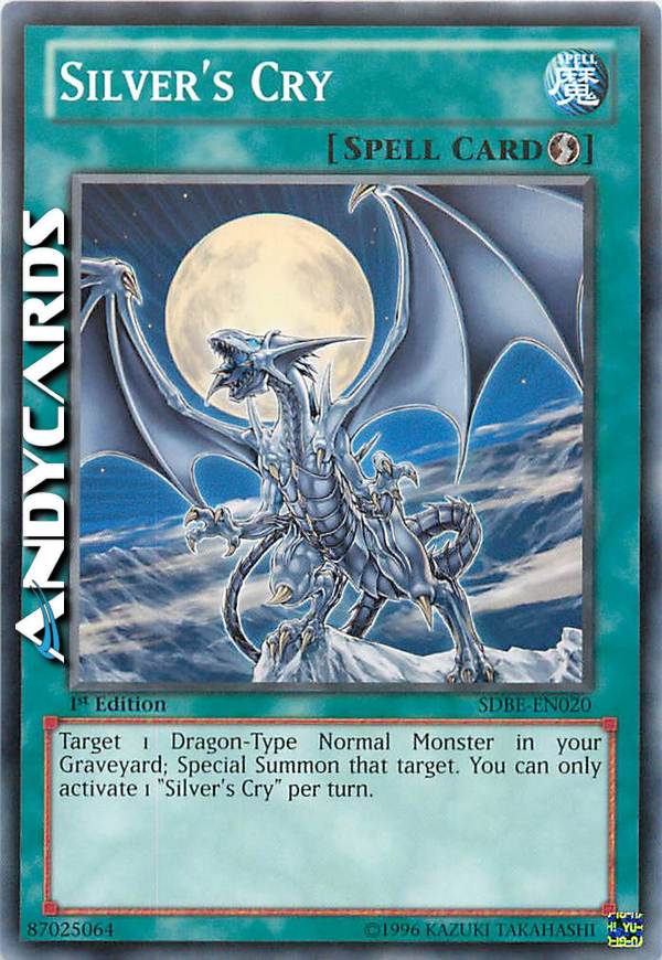 Target 1 Dragon Normal Monster in your GY; Special Summon that target. You can only activate 1 "Silver's Cry" per turn.