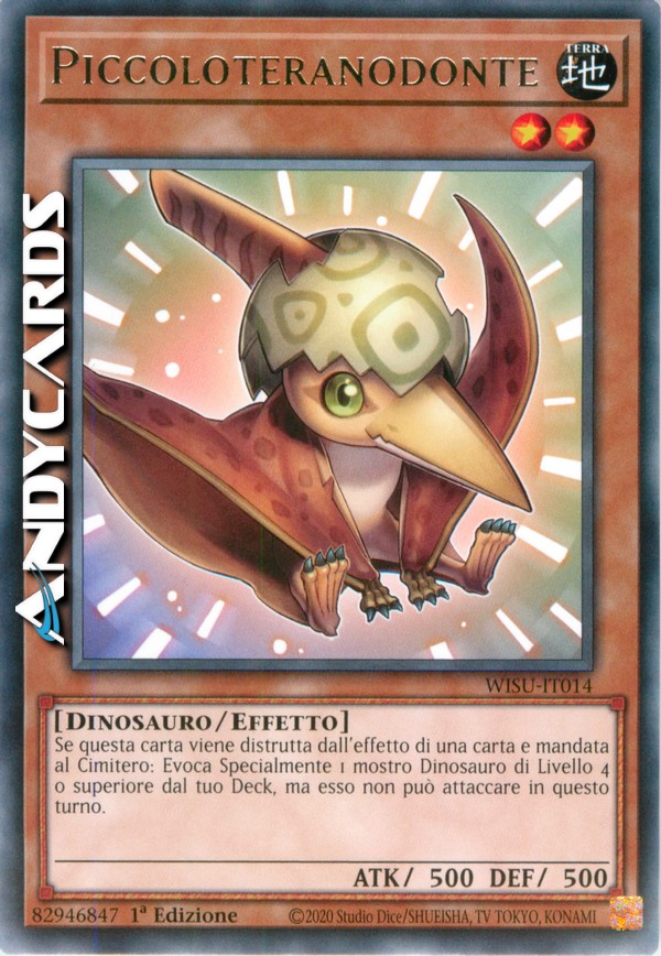 Se questa carta viene distrutta dall'effetto di una carta e mandata al Cimitero: Evoca Specialmente 1 mostro di Tipo Dinosauro di Livello 4 o superiore dal tuo Deck, ma esso non può attaccare in questo turno.
