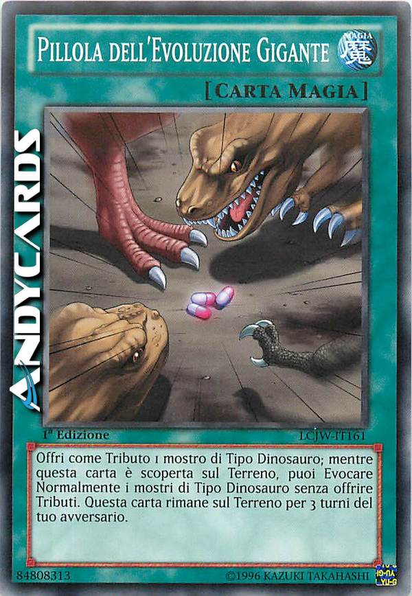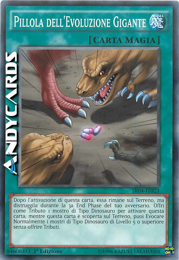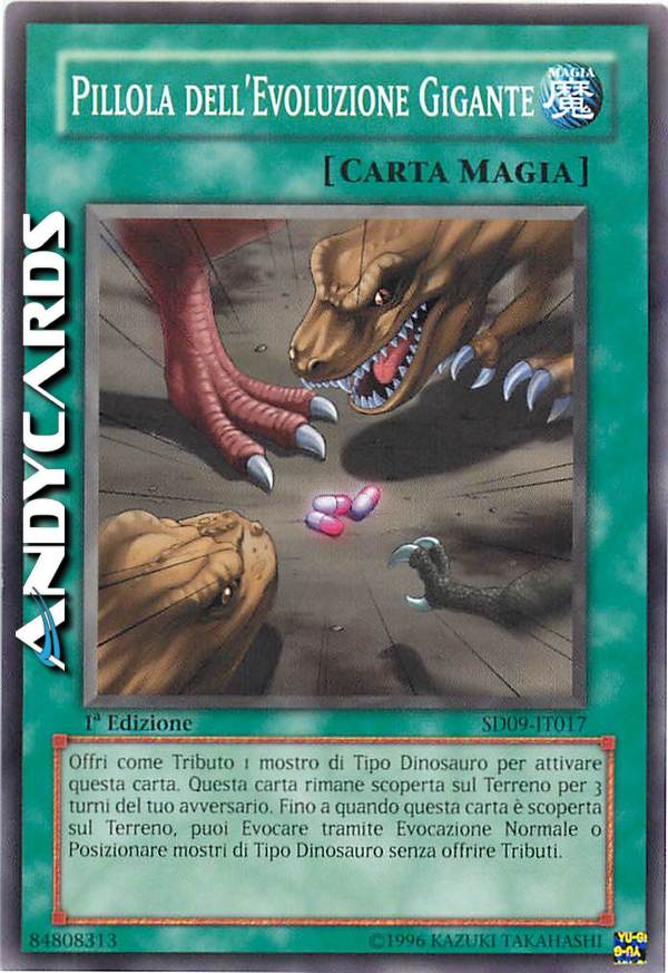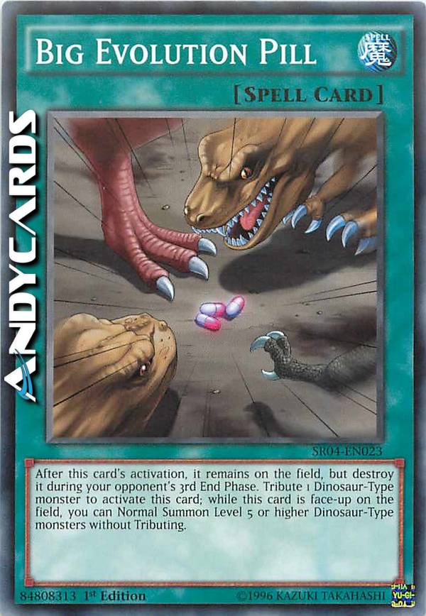 Dopo l'attivazione di questa carta, essa rimane sul Terreno, ma distruggila durante la 3a End Phase del tuo avversario. Offri come Tributo 1 mostro di Tipo Dinosauro per attivare questa carta; mentre questa carta è scoperta sul Terreno, puoi Evocare Normalmente i mostri di Tipo Dinosauro di Livello 5 o superiore senza offrire Tributi.