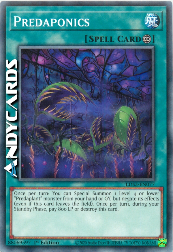 Once per turn: You can Special Summon 1 Level 4 or lower "Predaplant" monster from your hand or GY, but negate its effects (even if this card leaves the field). Once per turn, during your Standby Phase, pay 800 LP or destroy this card.