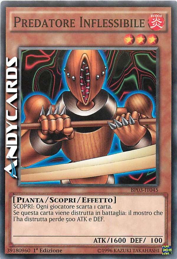 SCOPRI: Ogni giocatore scarta 1 carta. Un mostro che distrugge questa carta in battaglia perde 500 ATK e DEF.
