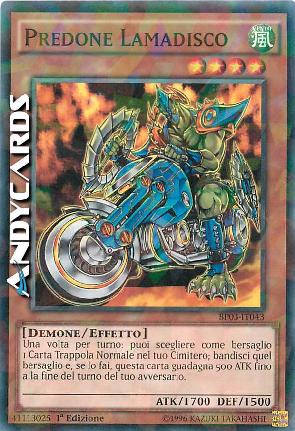 Una volta per turno, puoi rimuovere dal gioco 1 Carta Trappola Normale dal tuo Cimitero. Questa carta guadagna 500 ATK fino alla End Phase del turno del tuo avversario.