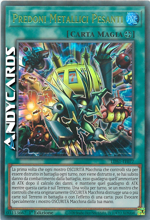 La prima volta che ogni mostro OSCURITÀ Macchina che controlli sta per essere distrutto in battaglia ogni turno, non viene distrutto e, se hai subito danno da combattimento dalla battaglia, esso guadagna quell'ammontare di ATK dopo il calcolo dei danni, e mantiene quel guadagno di ATK fino a quando questa carta è sul Terreno. Una volta per turno, se un mostro che controlli che era originariamente OSCURITÀ Macchina distrugge una o più carte sul Terreno in battaglia o con l'effetto di una carta: puoi Evocare Specialmente 1 mostro OSCURITÀ Macchina dalla tua mano.