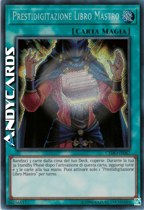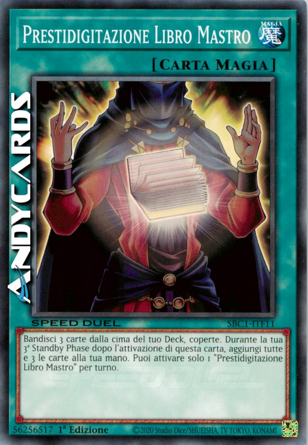 Bandisci 3 carte dalla cima del tuo Deck, coperte. Durante la tua 3a Standby Phase dopo l'attivazione di questa carta, aggiungi tutte e 3 le carte alla tua mano. Puoi attivare solo 1 "Prestidigitazione Libro Mastro" per turno.