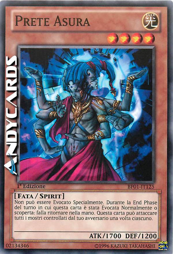Non può essere Evocato Specialmente. Durante la End Phase del turno in cui questa carta è stata Evocata Normalmente o scoperta: falla ritornare nella mano. Questa carta può attaccare tutti i mostri controllati dal tuo avversario una volta ciascuno.
