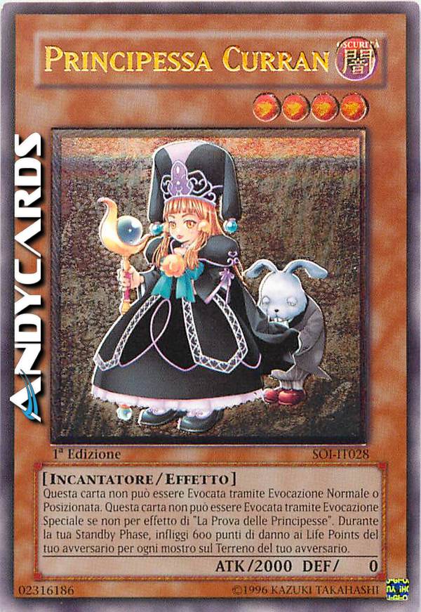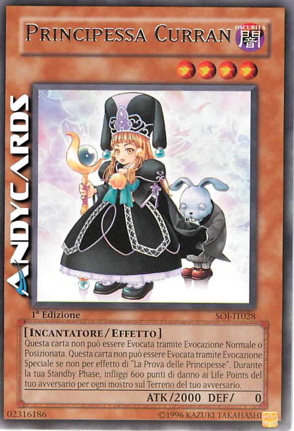 Questa carta non può essere Evocata tramite Evocazione Normale o Posizionata. Questa carta non può essere Evocata tramite Evocazione Speciale se non per effetto di "La Prova delle Princesse". Durante la tua Standby Phase, infliggi 600 punti di danno ai Life Points del tuo avversario per ogni mostro sul Terreno del tuo avversario.