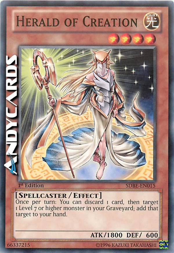 Una volta per turno: puoi scartare 1 carta, poi scegliere come bersaglio 1 mostro di Livello 7 o superiore nel tuo Cimitero; aggiungi quel bersaglio alla tua mano.