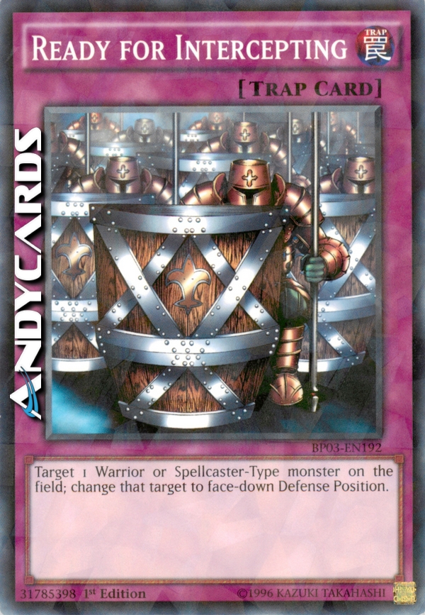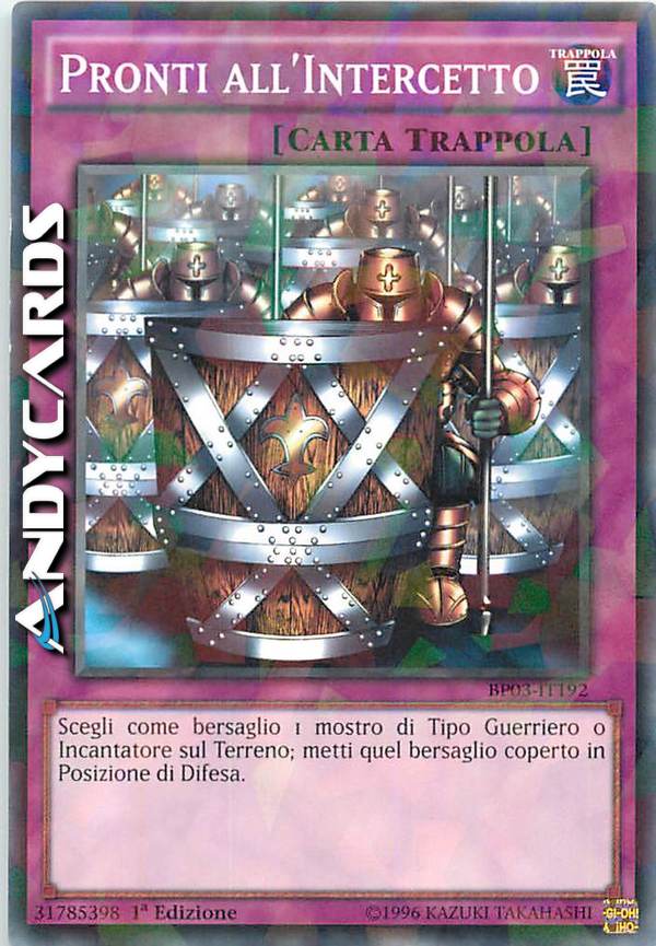 Scegli come bersaglio 1 mostro Guerriero o Incantatore sul Terreno; metti quel bersaglio coperto in Posizione di Difesa.